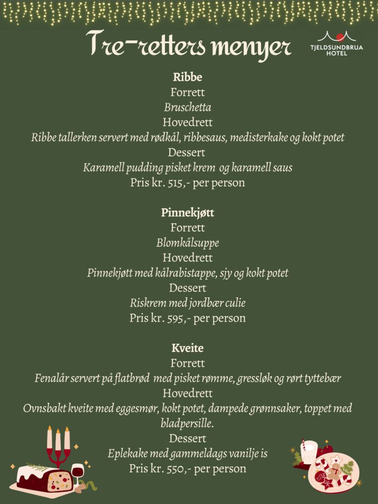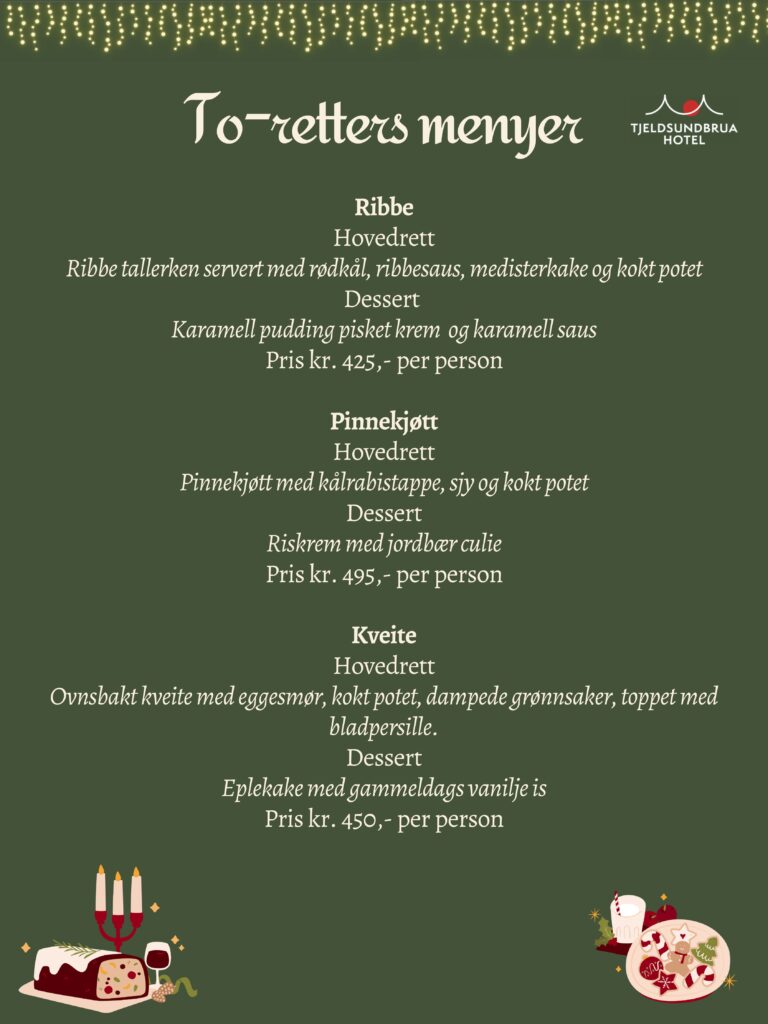 Kontakt oss på telefon 77 08 93 00 eller på epost booking@tjeldsundbrua.no og bestill årets julebord!